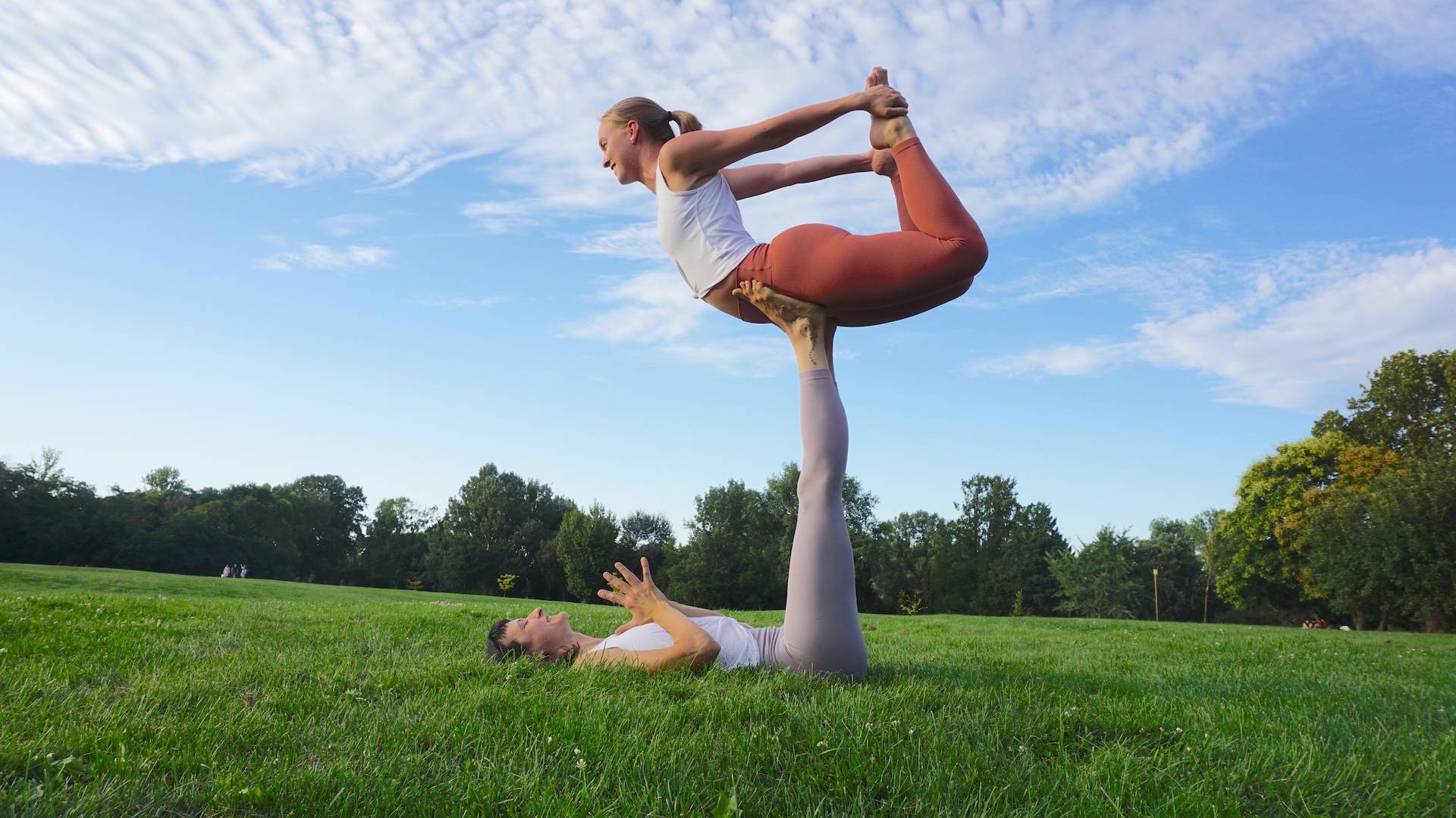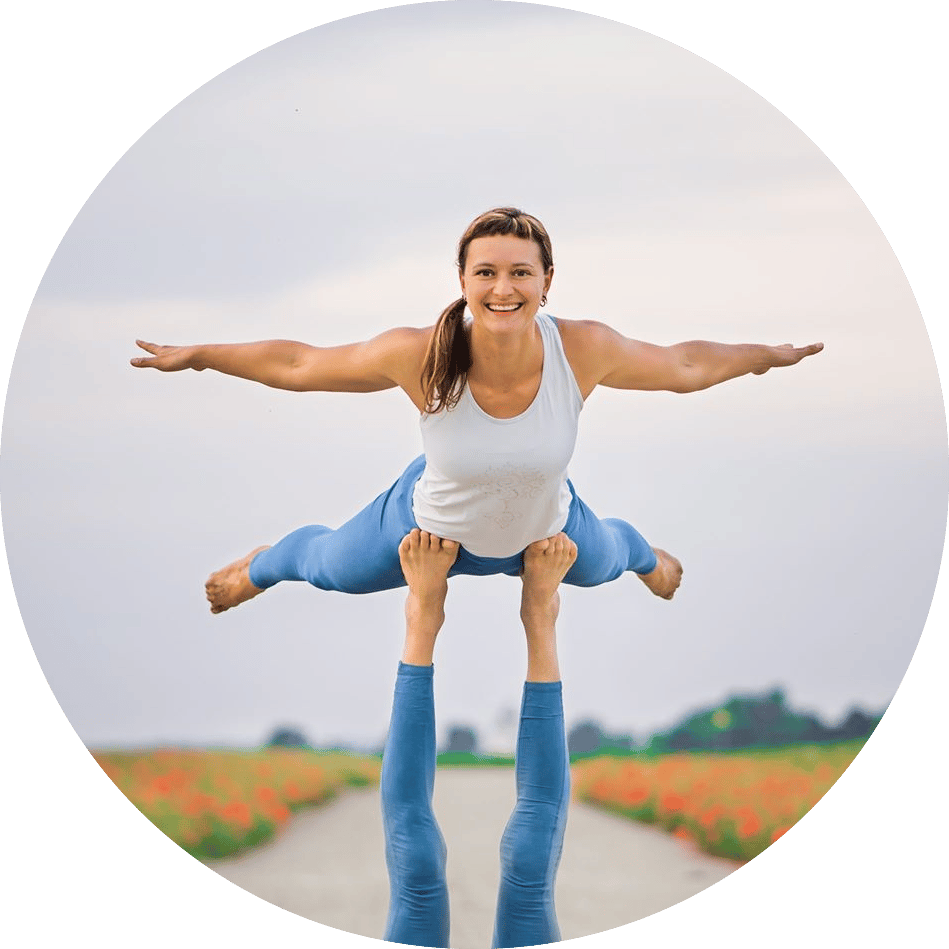Ideal für Anfänger + Quereinsteiger. Lerne 2 lustige Partner Warm-Ups und die wichtigste Grundposition: AcroYoga Front Plank inklusive 2 Variationen: Bird + Bogen.